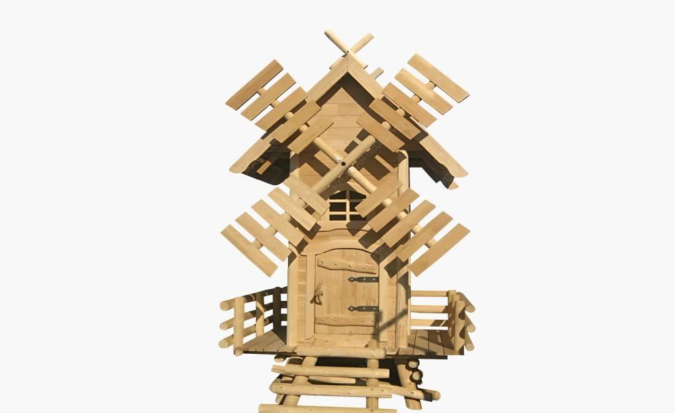 Декоративная мельница из дерева создана для любимого сада, чтобы украсить его и преобразить на радость, а может даже зависть всем окружающим. Наша большая деревянная мельница стоит на площадке, выполненной из березовых бревнышек. Лучшими соседями этого изделия будут красивые многолетники, сочный газон, композиции из камней. Она сделана с человеческий рост и даже выше, значит, ее будет невозможно не заметить даже издалека.