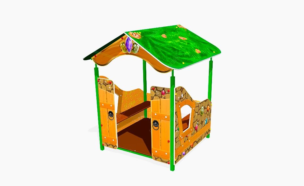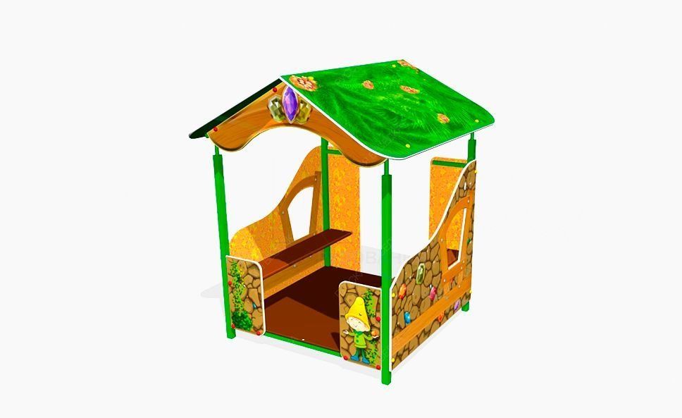Детский игровой домик «Гном У1» представляет собой металлический каркас, облицованный фанерными накладками. Рисунок на детали домика нанесен при помощи ультрафиолетовой печати и покрыт лаком. Игровые домики используется для организации сюжетно-ролевых игр детей дошкольного возраста, развивает у них образное мышление любознательность и творческую инициативу.