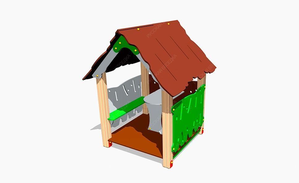 Детский игровой домик «Хижина» представляет собой стойки из клееного бруса, облицованные накладками из влагостойкой фанеры. Домик оснащен столиком и двумя скамейками, позволяющими детям дошкольного возраста наслаждаться игрой. Данное оборудование предназначено для эксплуатации на детских площадках.