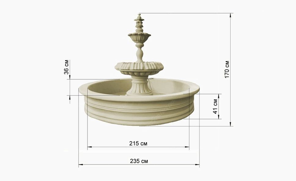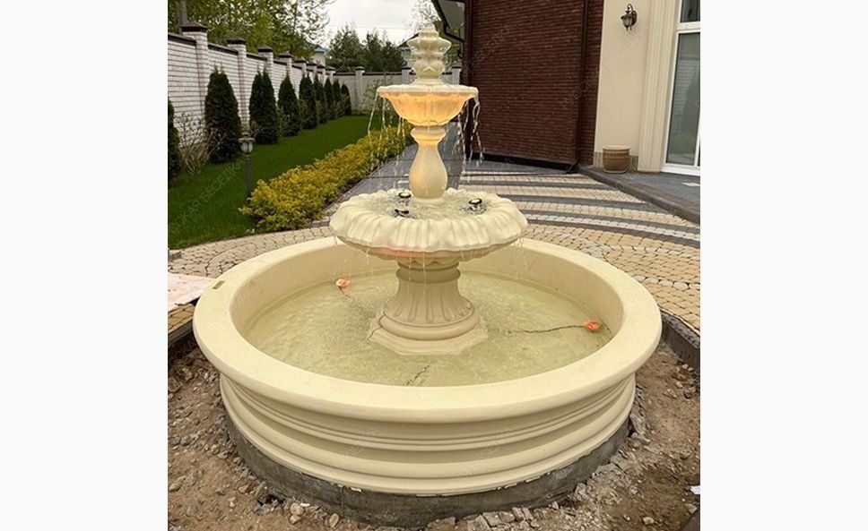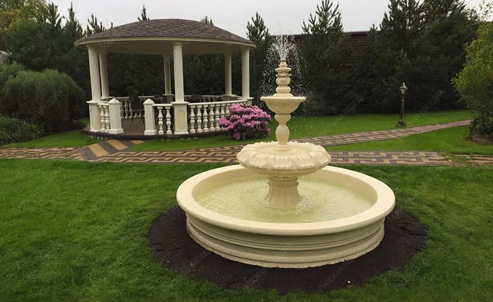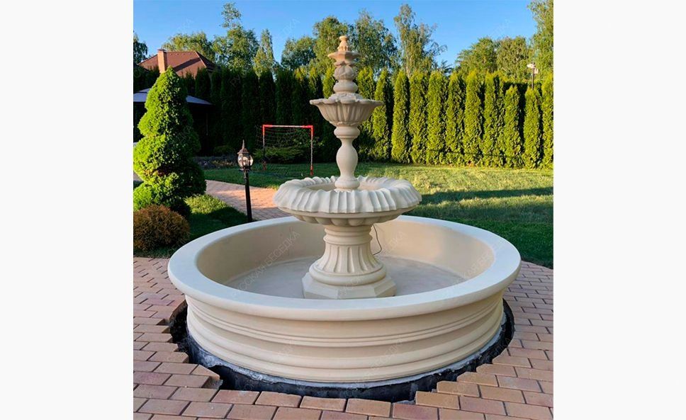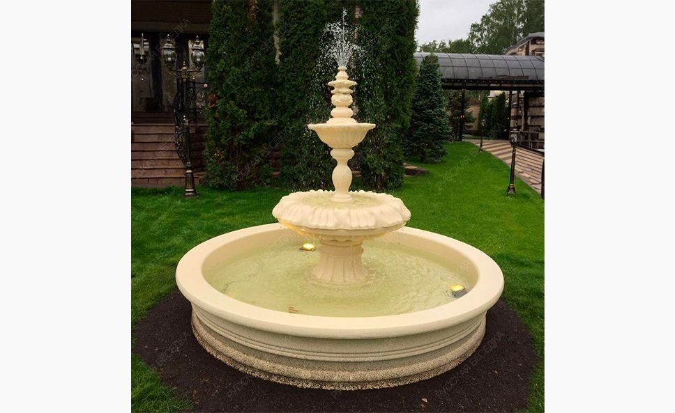Классический фонтан для украшения дачи, коттеджа или загородного дома. Исполнение в данном цвете придает модели элегантность и сдержанность. Она хорошо будет смотреться как на фоне дорогого особняка, так и рядом с небольшим домом. Благодаря компактному бассейну этот фонтан можно разместить даже на небольшом участке.                                         Бежевый фонтан с небольшим бассейном и элегантными сердечником, который состоит из каскада чаш, поможет создать уютный уголок рядом с домом. Благодаря небольшим размерам модель будет хорошо смотреться рядом с одноэтажным домом или на небольшом приусадебном участке. Бежевый фонтан подойдет для украшения летней площадки перед кафе, небольшого городского сквера и других общественных мест. Небольшой фонтан в бежевом цвете привлекает лаконичными, но изящными формами. Композиция выглядит целостной, изящной и уравновешенной, не перегруженной лишними деталями.