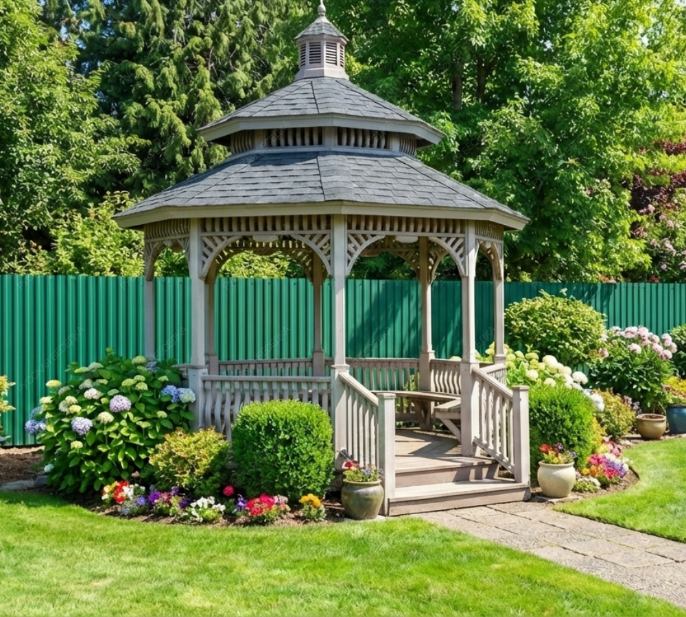 Современный ландшафтный дизайн и беседки - центральные элементы загородного участка. Беседка должна размещаться в таком месте участка, где вам будет комфортно находиться, а также она должна отвечать своему назначению и притягивать взгляды. Беседка является уникальным строением, с ее помощью можно отдохнуть за чашечкой кофе, укрыться от знойного солнца или провести шумный праздник в кругу семьи и друзей.