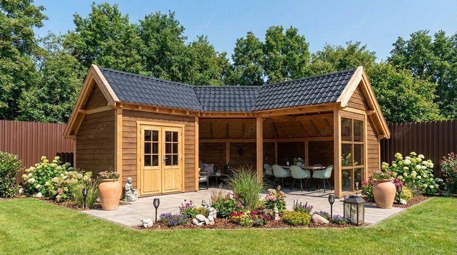 Летняя кухня станет не только функциональным и красивым дополнением к вашему участку, но и создаст атмосферу уюта для теплых вечеров в кругу семьи и друзей. Круглый год вы сможете радовать близких блюдами, приготовленными на открытом огне, а в сезон - заниматься заготовками овощей.