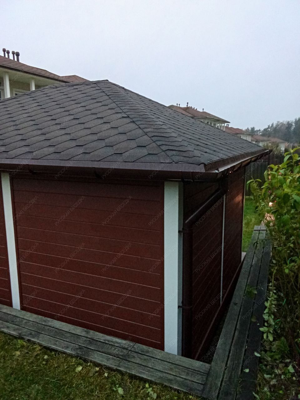 Имитация бруса 16×135 мм внутри, имитация бруса 21×135 мм снаружи.