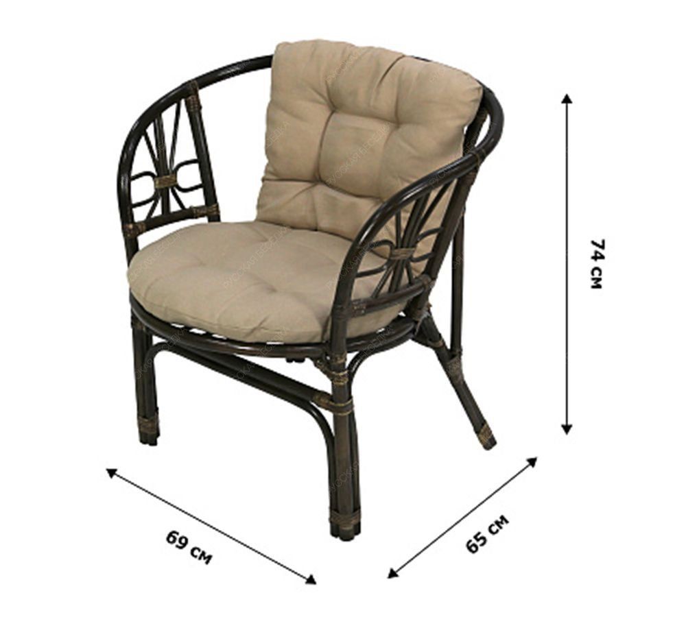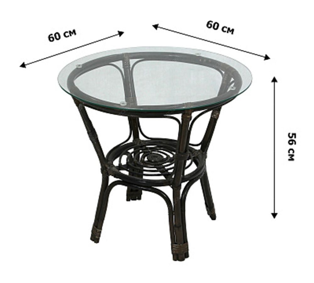 Стол: 60х60х56, кресло: 69х65х74