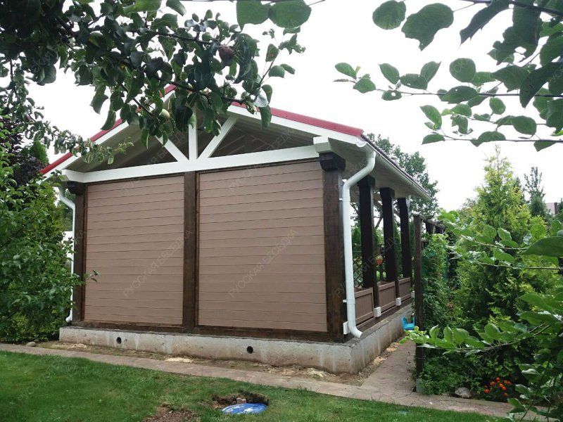 Для производства всех элементов навеса используется только отборная древесина без малейших дефектов, прошедшая камерную сушку и пропитку антисептиками. Навесу после защитной обработки лаком не страшны высокая влажность, а значит, можно быть уверенным, что дерево не растрескается, не разбухнет и не покоробится.