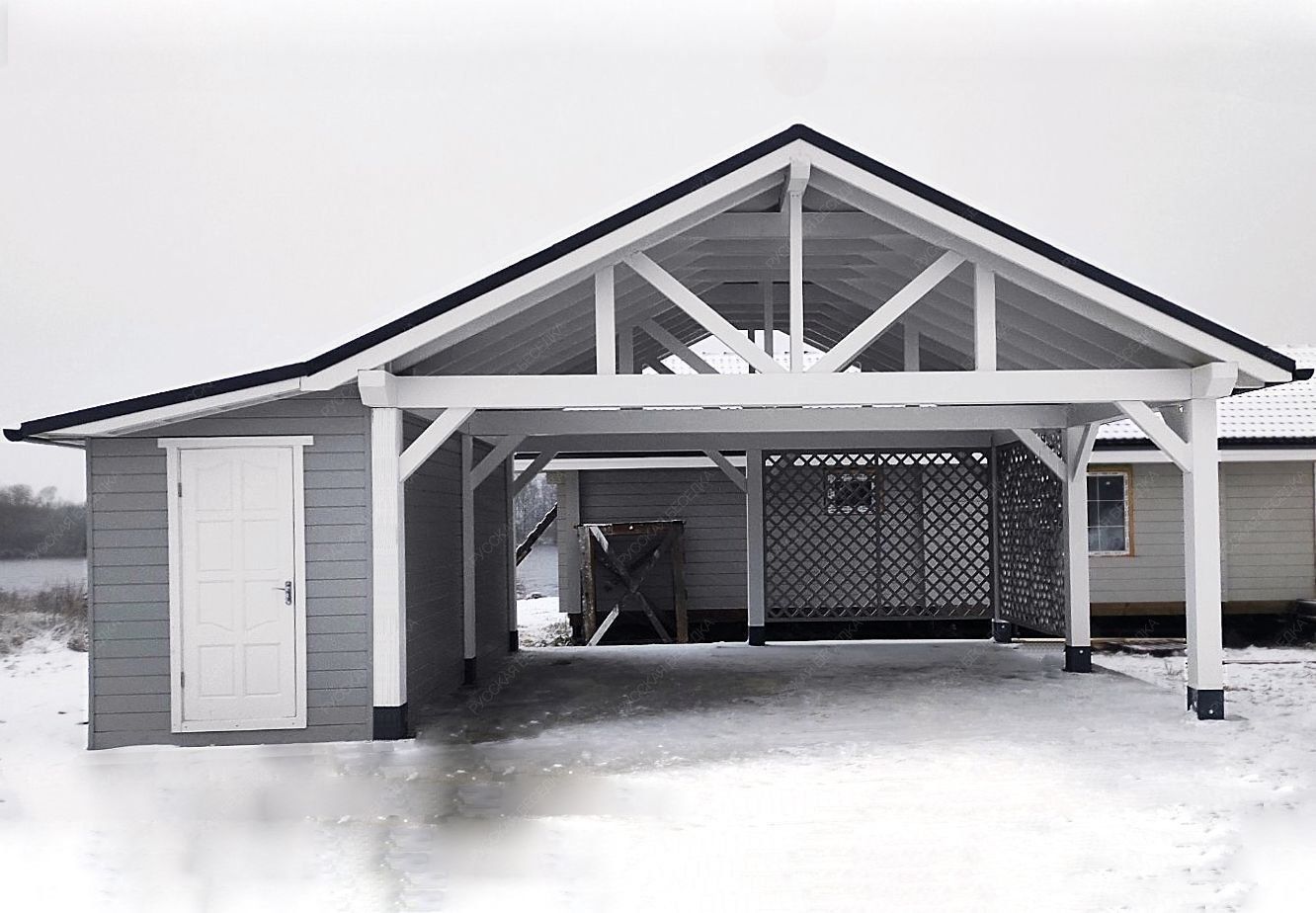Навес из дерева послужит отличным парковочным местом для одного или нескольких автомобилей.
