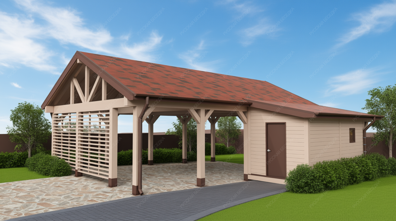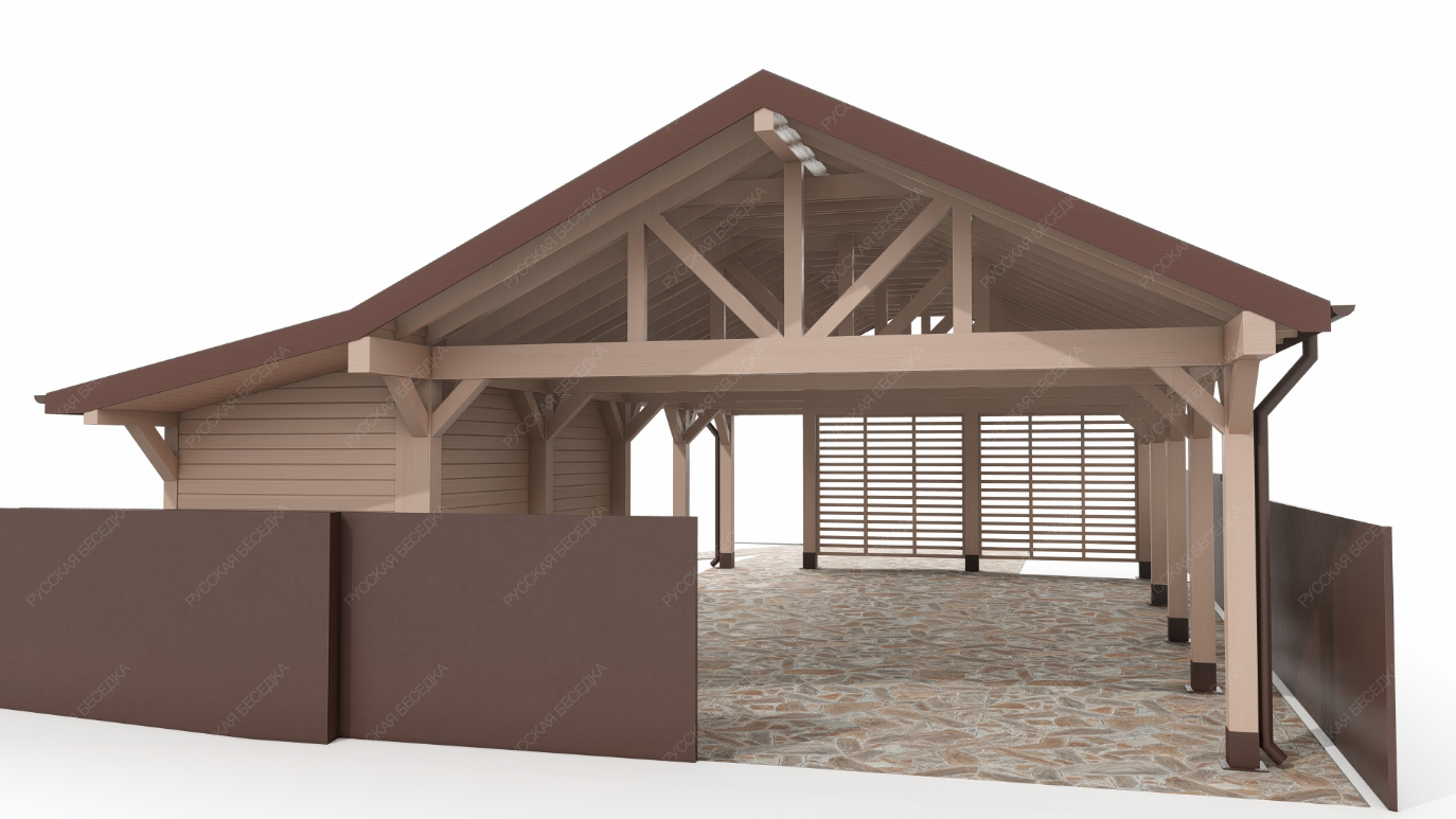 Навес из дерева послужит отличным парковочным местом для одного или нескольких автомобилей.