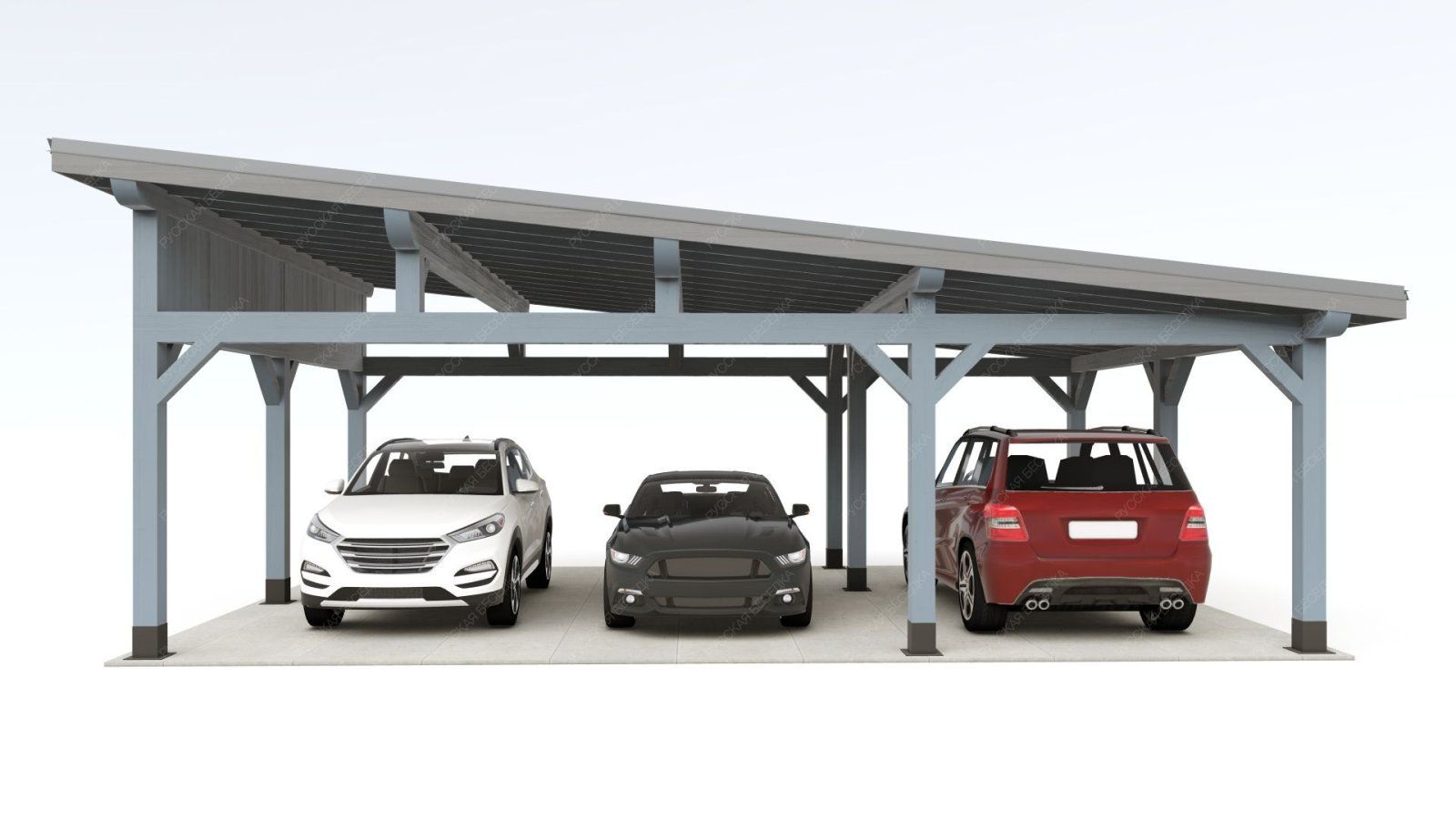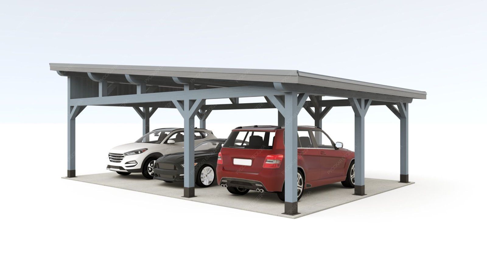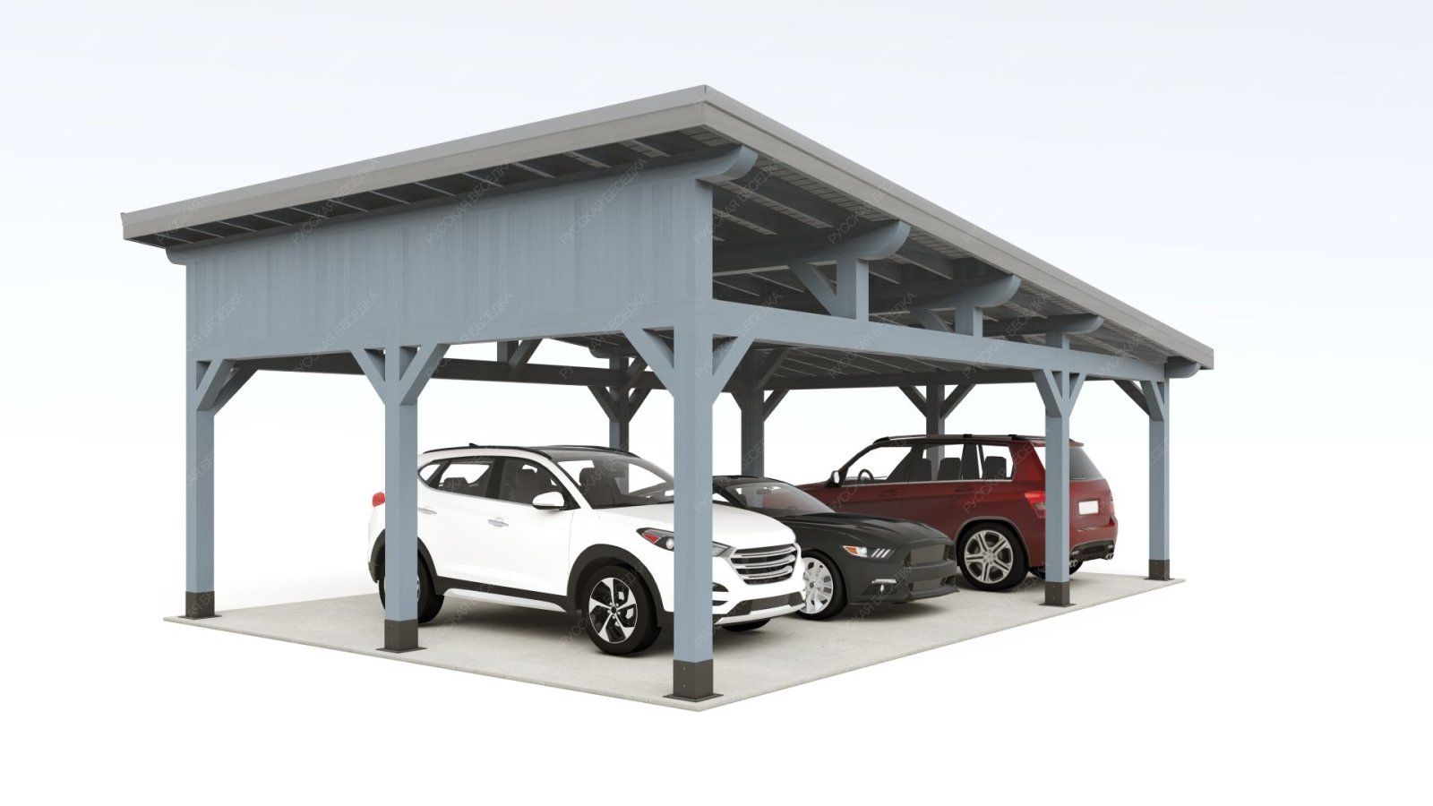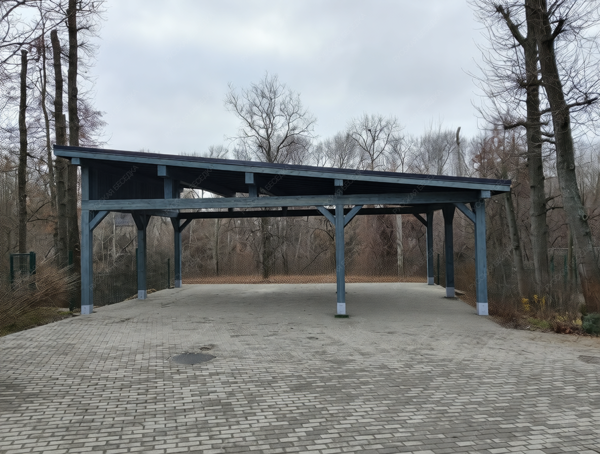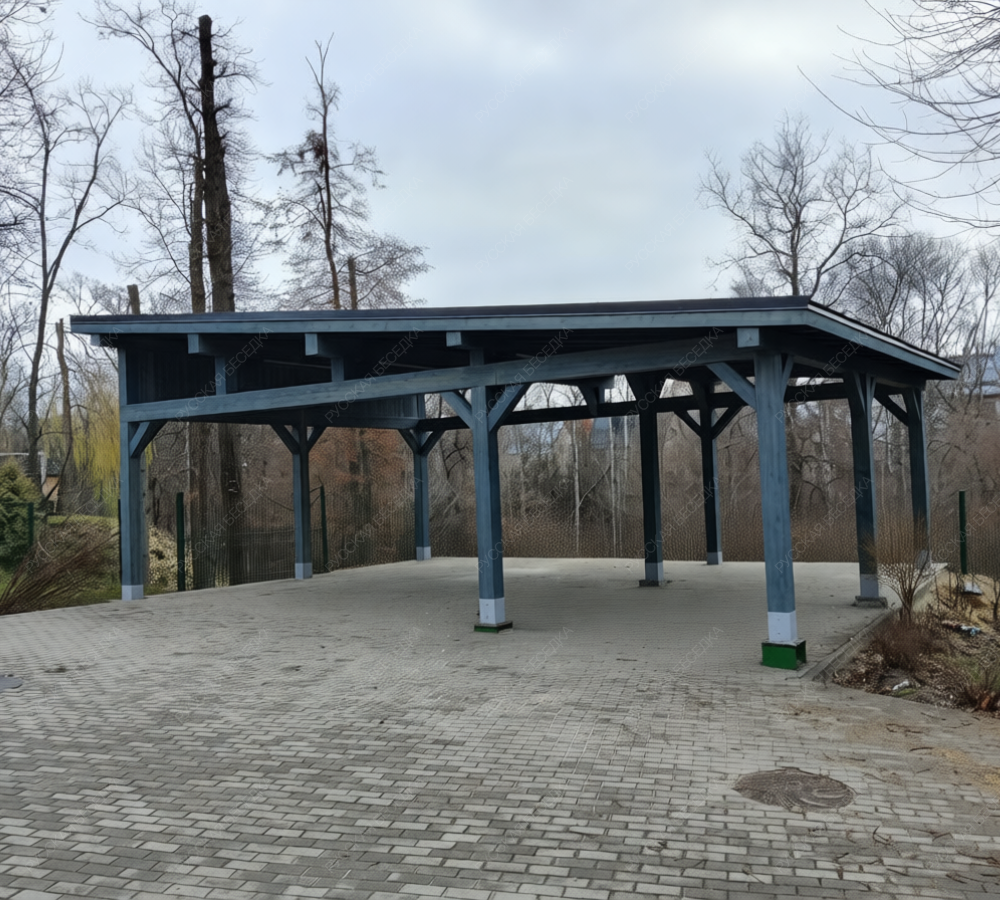 Навес из дерева послужит отличным парковочным местом для одного или нескольких автомобилей.