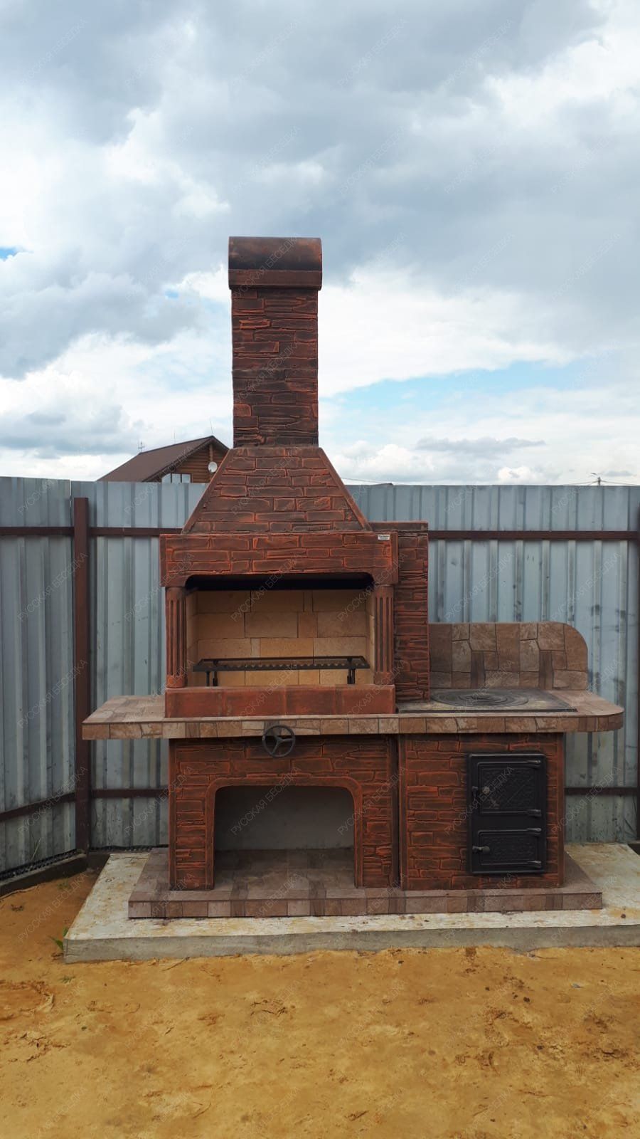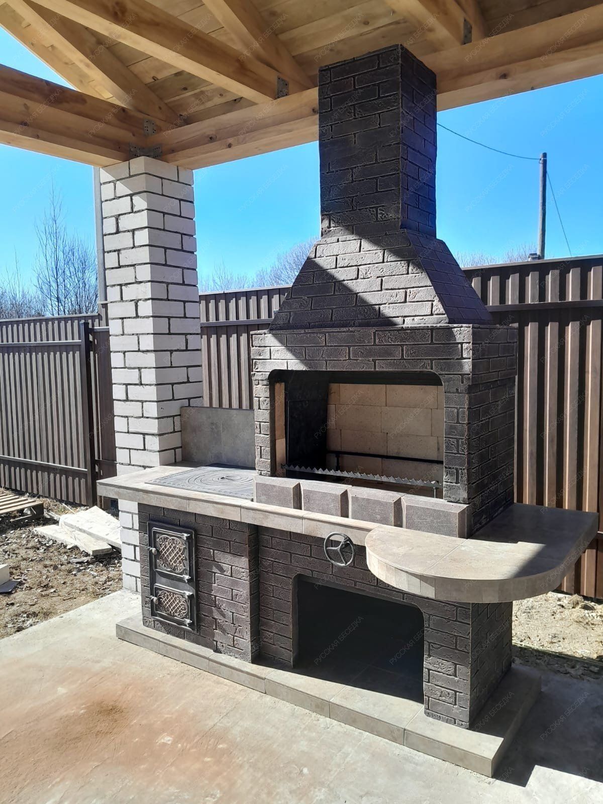Печь № 20А — Печь Барбекю с большой топкой и печью под казан (фактура под кирпич)