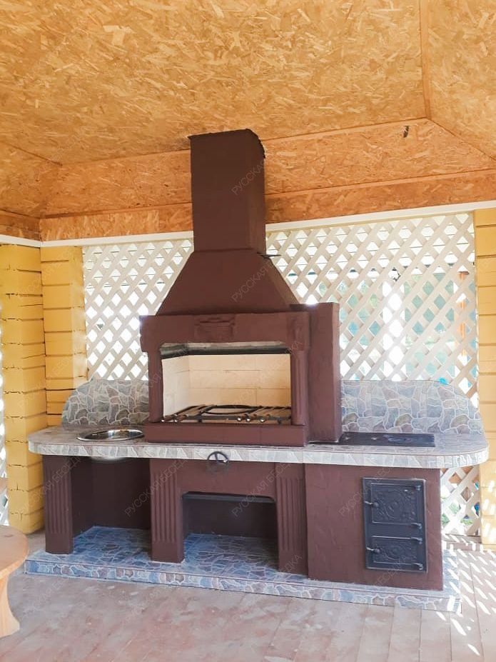 Печь № 21 — Печь барбекю с печью под казан и мойкой