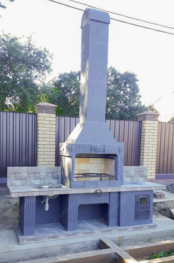 Барбекю-комплекс сделан из армированного огнеупорного бетона с добавлением керамзита.