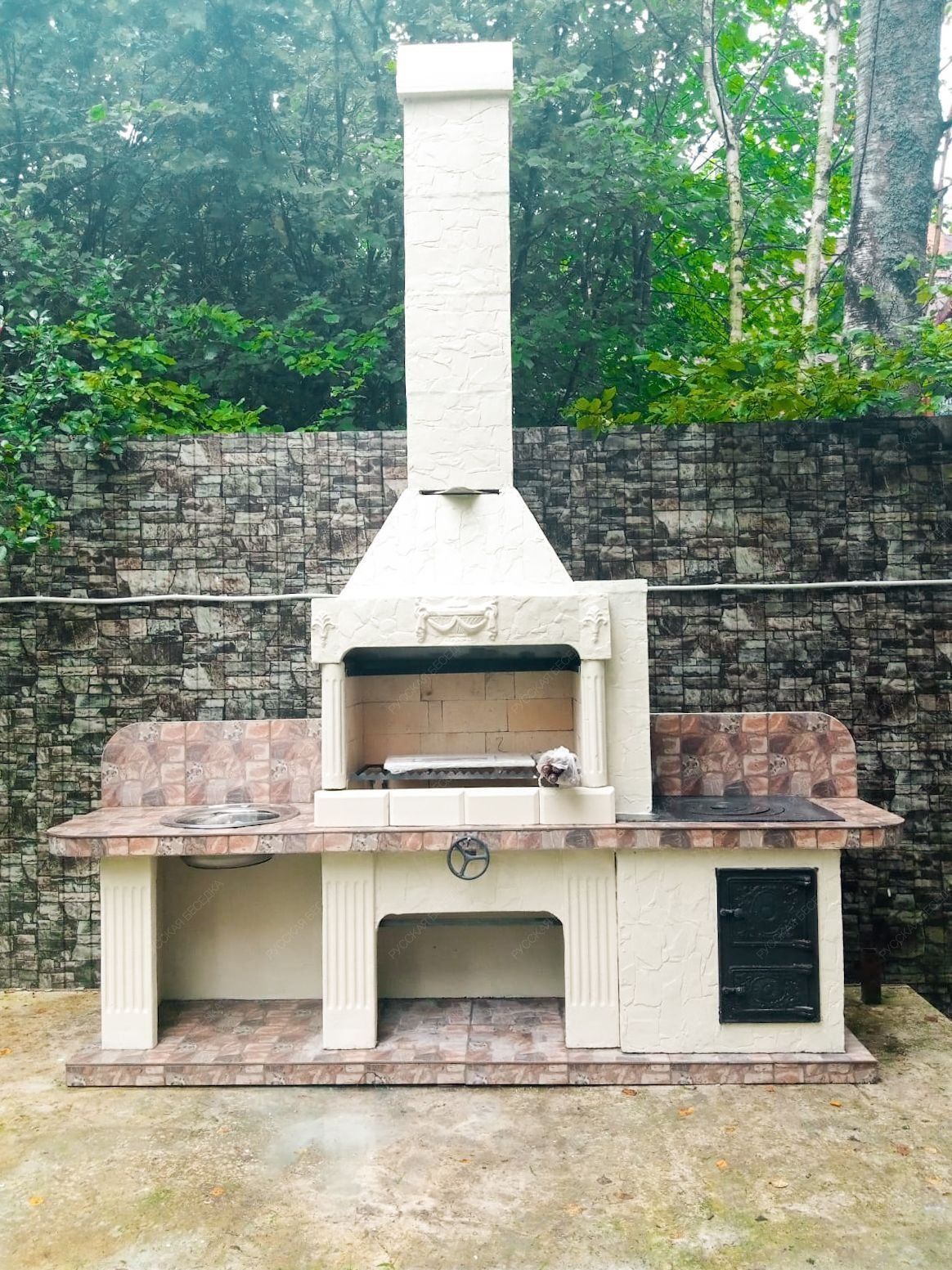 Традиционно для изготовления печи-барбекю использованы армированный бетон, огнеупорный кирпич и другие прочные материалы.