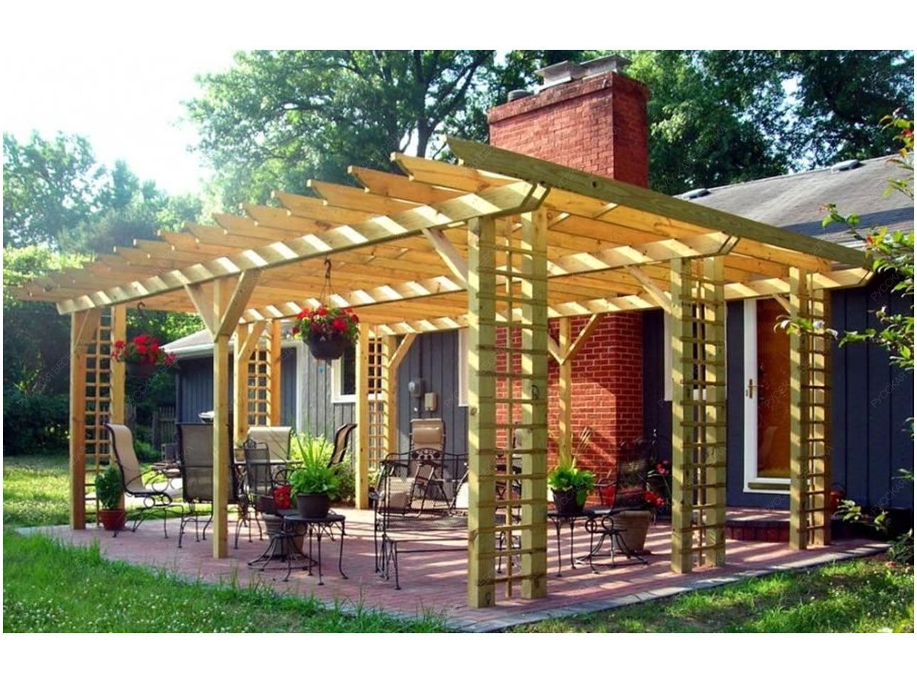 Деревянная пергола придаст вашему садовому участку теплую и уютную атмосферу.Также пергола может служить опорой для плетущихся растений - только представьте, как приятно находиться в окружении цветущего клематиса или пышных роз! Дополнительные элементы, такие как встроенное освещение, декоративные решетки, качели или скамейки, могут усилить визуальный эффект и создать еще более комфортное пространство. А если в конструкцию перголы добавить подиум, то он может служить местом для расслабления или стать сценой для семейных мероприятий.