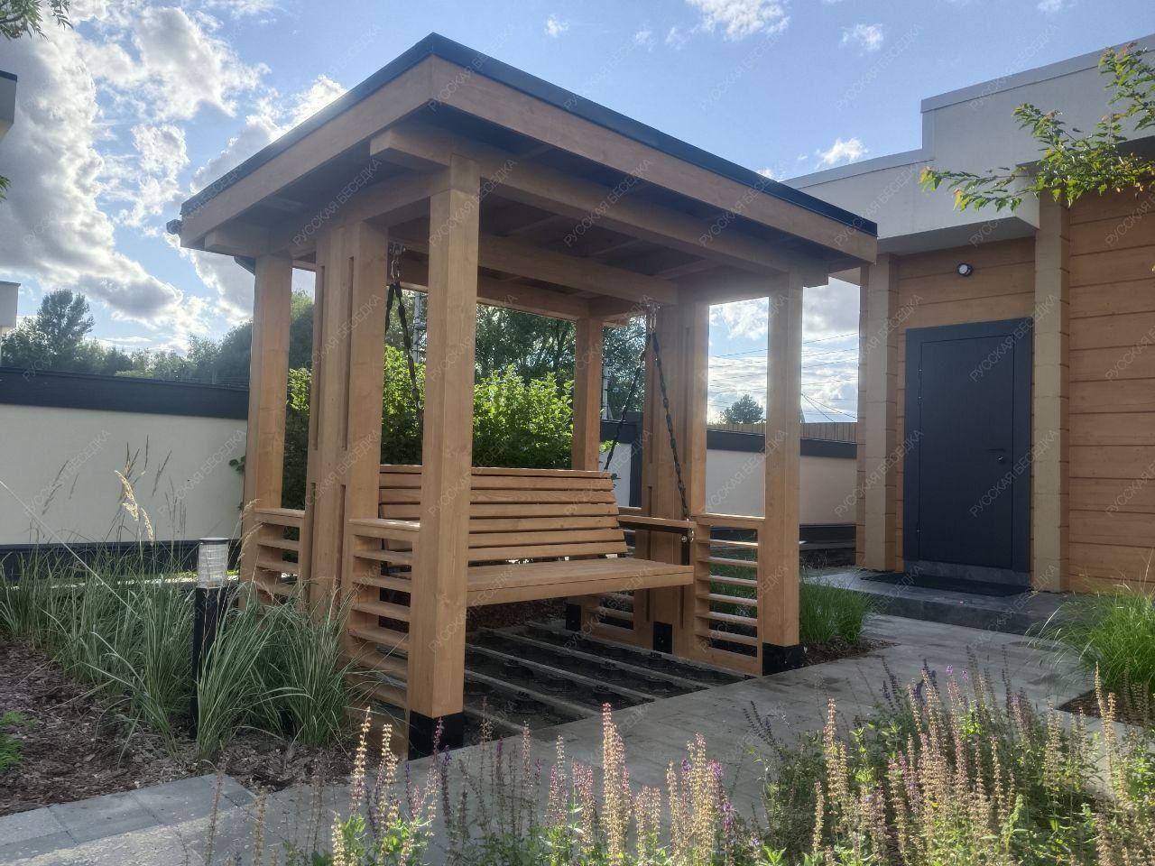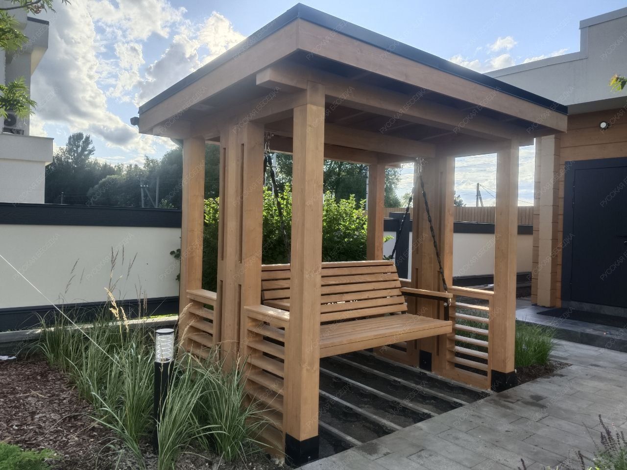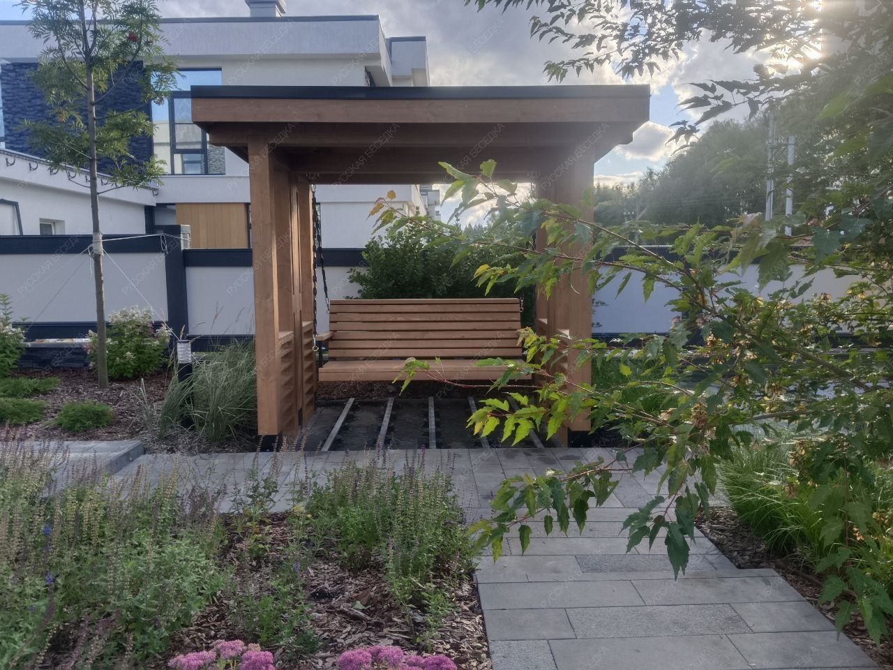 Пергола с навесом обеспечивает надежную защиту от солнечных лучей, создавая тенистое пространство для отдыха. Она станет идеальным местом для встреч с друзьями, чтения книг или приема пищи на свежем воздухе.