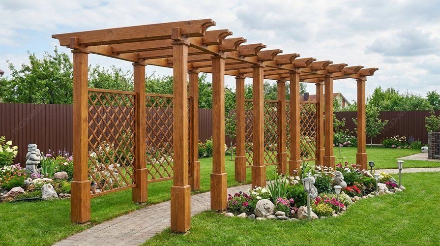 Перголы из дерева сочетают в себе природную красоту и современные дизайнерские решения, создают идеальное место для отдыха и различных видов досуга на открытом воздухе. Перголы могут стоять отдельно или быть частью композиции с другими элементами сада. Деревянная пергола придаст вашему садовому участку теплую и уютную атмосферу.Также пергола может служить опорой для плетущихся растений - только представьте, как приятно находиться в окружении цветущего клематиса или пышных роз! Дополнительные элементы, такие как встроенное освещение, декоративные решетки, качели или скамейки, могут усилить визуальный эффект и создать еще более комфортное пространство. А если в конструкцию перголы добавить подиум, то он может служить местом для расслабления или стать сценой для семейных мероприятий. Пергола с навесом обеспечивает надежную защиту от солнечных лучей, создавая тенистое пространство для отдыха. Она станет идеальным местом для встреч с друзьями, чтения книг или приема пищи на свежем воздухе. Любая пергола не только украшает ваш сад, но и предоставляет функциональное пространство для приятного времяпровождения на природе с семьей и друзьями.