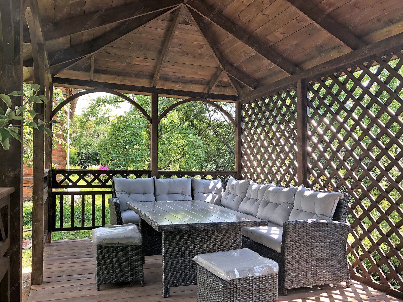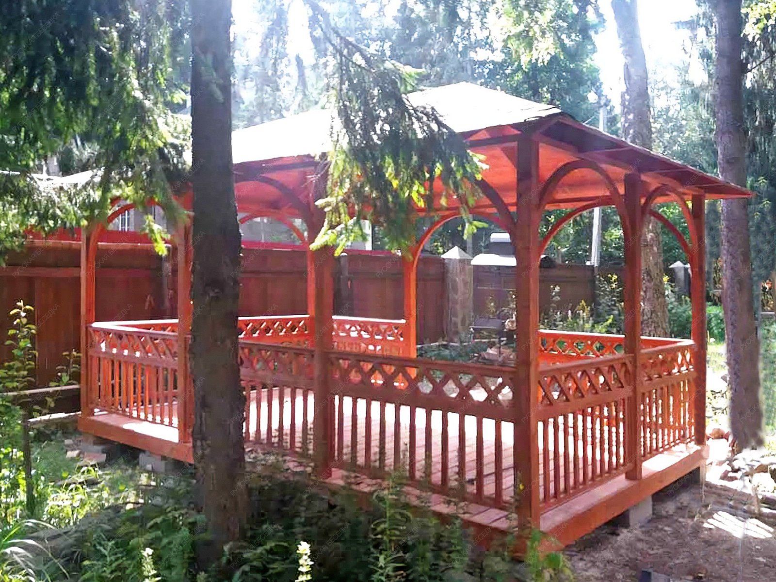 Беседка выполненная из лучших пород древесины, прослужит долгие годы и не потребует особого ухода и обслуживания. Специальные лакокрасочные материалы которые мы используем, предотвратят старение, гниение и заражение грибком конструкции кухни. Используемая огнебиозащита образует полупрозрачное полуматовое покрытие, стойкое к влаге, УФ-излучению, перепадам температуры и другим атмосферным воздействиям.