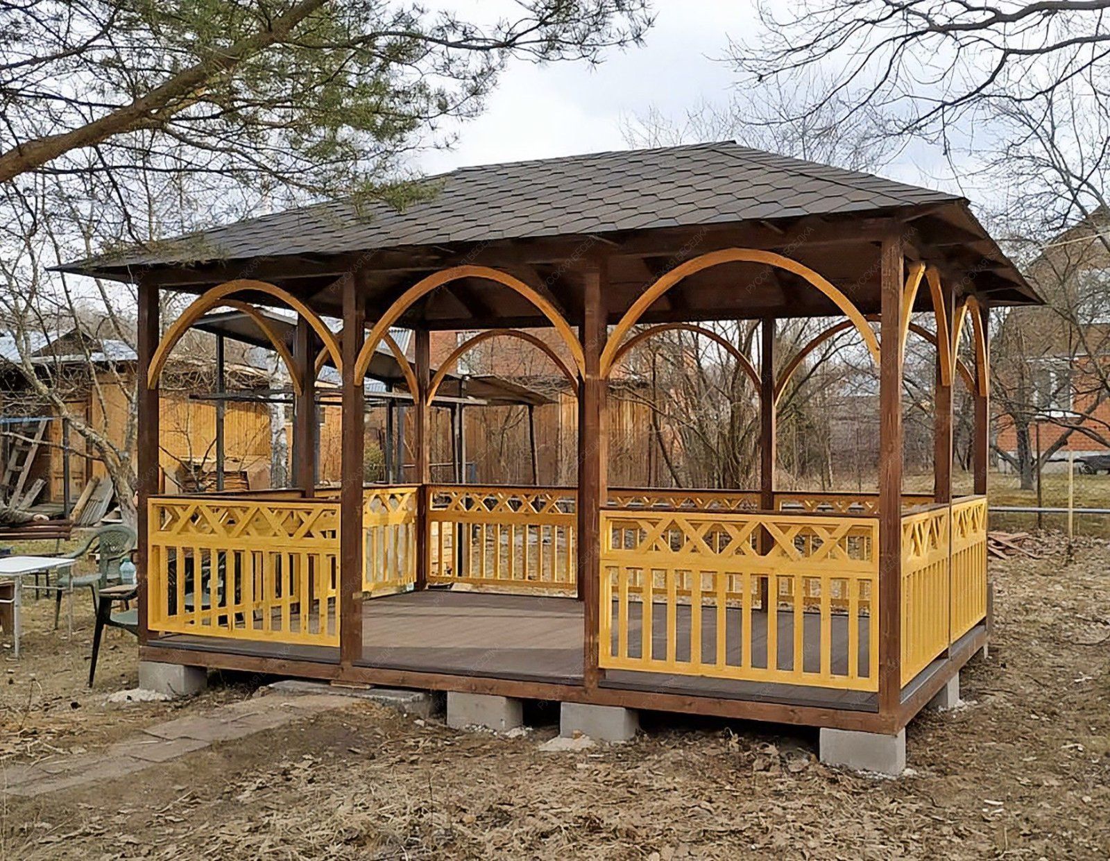 Как любой архитектурный элемент беседка должна отвечать трем основным требованиям – надежность, функциональность и красота. В зависимости от предпочтений владельцев участка и особенностей ландшафта будет определяться конфигурация строения. Наши специалисты помогут с выбором модели беседки, ее конструкцией и дизайнерским решением. Индивидуально для Вас мы разработаем визуализацию и проект конструкции, котрая станет центром внимания вашего участка.
