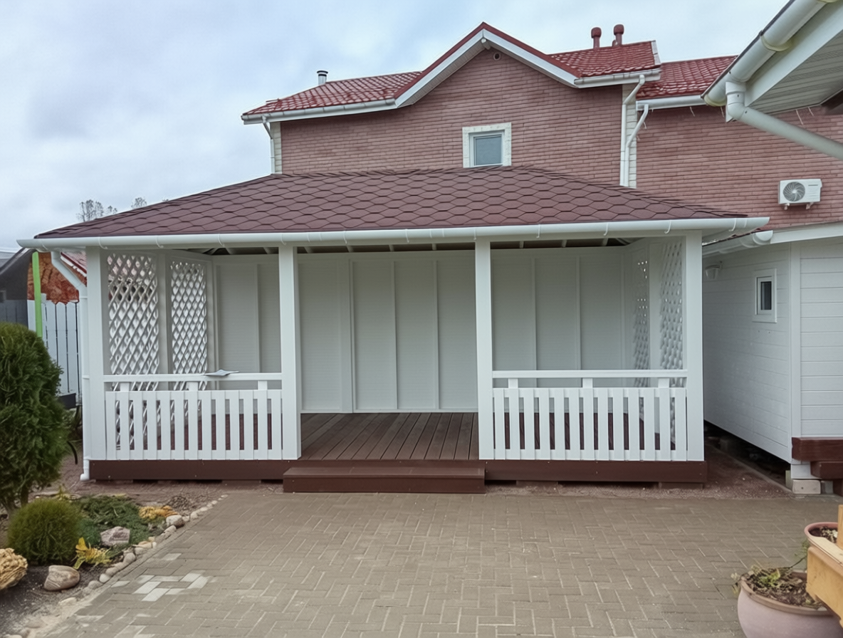 ДПК — это древесно-полимерный композит, современный материал, предназначенный для наружного применения в любых климатических условиях с самыми интенсивными нагрузками. Не подвергается короблению и растрескиванию. В процессе производства волокна древесины смешиваются с полиэтиленом низкого давления, добавками и красителями, что позволяет защитить их от воздействия бактерий и грибков, сохранить привлекательный вид изделия в течение длительного срока эксплуатации. При этом покрытию не нужны ни лак, ни специальная пропитка, ни другие защитные и декоративные средства.