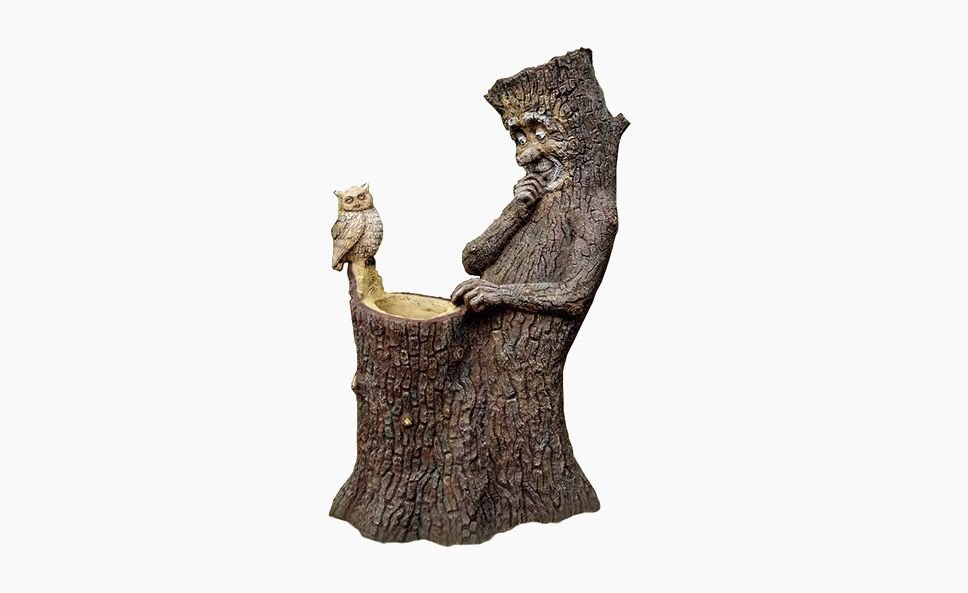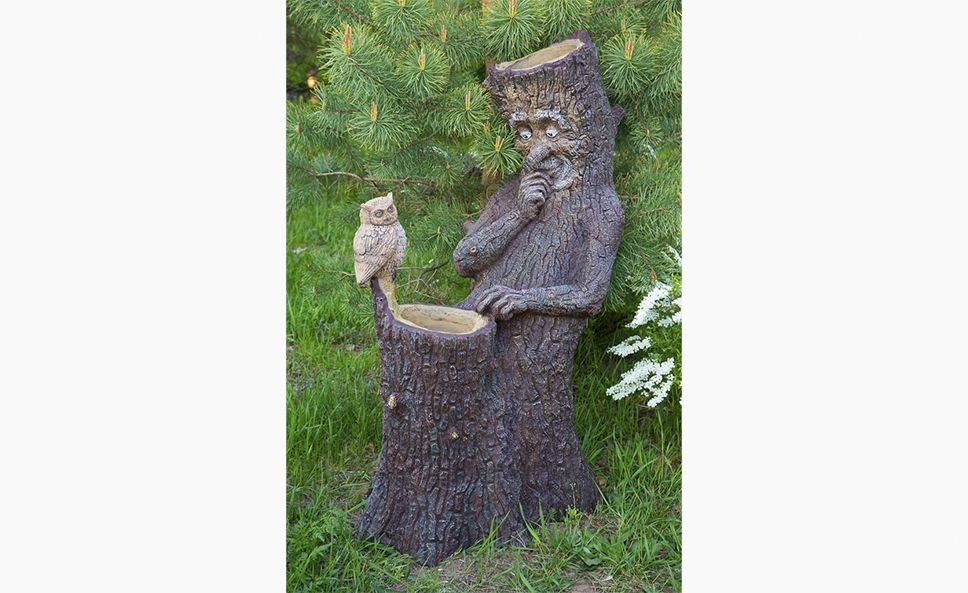 Дизайнерская фигурка-цветник «Пень с совой» украсит поляну или дополнит цветник. Садовая фигура добавит оригинальности и изящности, станет изюминкой вашего ландшафта. Фигурка из прочного, лёгкого стеклопластика, противоударная и влагостойкая, не боится изменения температуры, сохранит на долгие годы первозданный вид.                                                                                                                                                                Красивый цветник у входа в дом или у ворот на участке выглядит, как приглашение желанному гостю войти. Именно цветы создают атмосферу беззаботного отдыха, дарят отличное настроение. В тот момент, когда дачный участок перестал быть главным источником пропитания, а превратился в место проведения праздников, выходных и отдыха, это их свойство стало особенно актуальным. И ничто не подчеркнёт неповторимую красоту каждого цветка, как живописный цветник. В отличие от клумб, цветники можно расположить в любом месте: поставить на каменистую дорожку, на заросшую дикой травой лужайку или даже на веранду - для их устройства не требуется перекопанная почва, да и в принципе нужно совсем немного земли. И, кстати, растения в цветниках меньше болеют и дольше сохраняют привлекательный внешний вид. Цветник с кашпо можно превратить в настоящее неувядающее весь сезон главное украшение сада. Горшки с цветами, которые ставятся в них, можно периодически менять, заменяя виды растений по мере их цветения.       ветник на даче, выполненный как скульптура из полиэфирной смолы, - одно из лучших решений. Это экологически чистый материал, который длительное время сохраняет форму, устойчив к механическим повреждениям, хорошо себя чувствует в любых климатических условиях и при любой погоде.