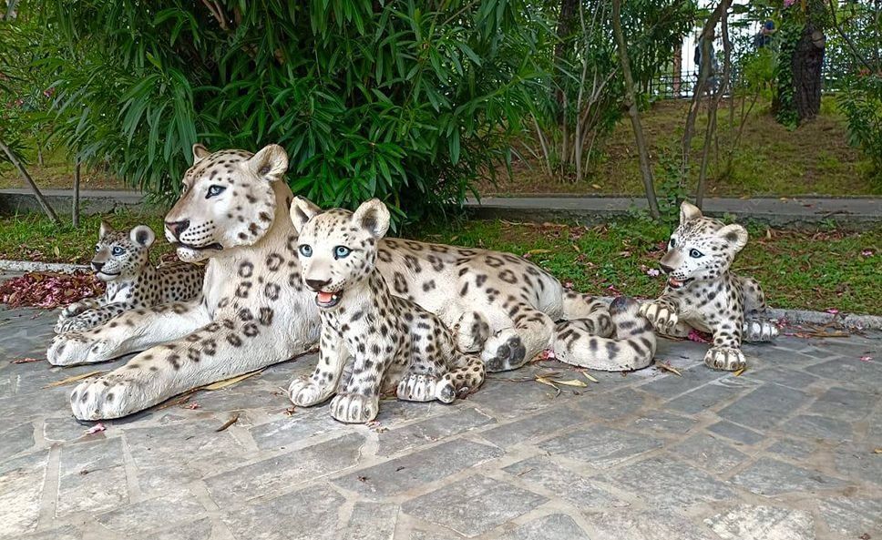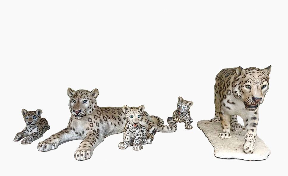Семья леопардов станет идеальным акцентом в парковой аллее или на лужайке, привлекая внимание каждого проходящего мимо. Отличное украшение сада или другой открытой территории. Изящная статуя  леопардов прекрасно будет смотреться как на улице, так и в помещении.                                                                   Статуи леопардов станут главным украшением вашего парадного въезда или входа в здание. Безупречная пластика хищного животного, искусно проработанная морда, проступающий рельеф мускулатуры.Садовая фигура - Семья леопардов  Классический вариант использования сидящих леопардов – украшение входной группы. Животных, обычно в парном исполнении, устанавливают при въезде на частную территорию, водружают на парапет у входа в дом, украшают ими вход с улицы в кафе, рестораны, общественные учреждения. Не менее успешно леопарды  зарекомендовали себя в качестве садово-парковых скульптур, элементов убранства просторных интерьеров и офисных помещений.
