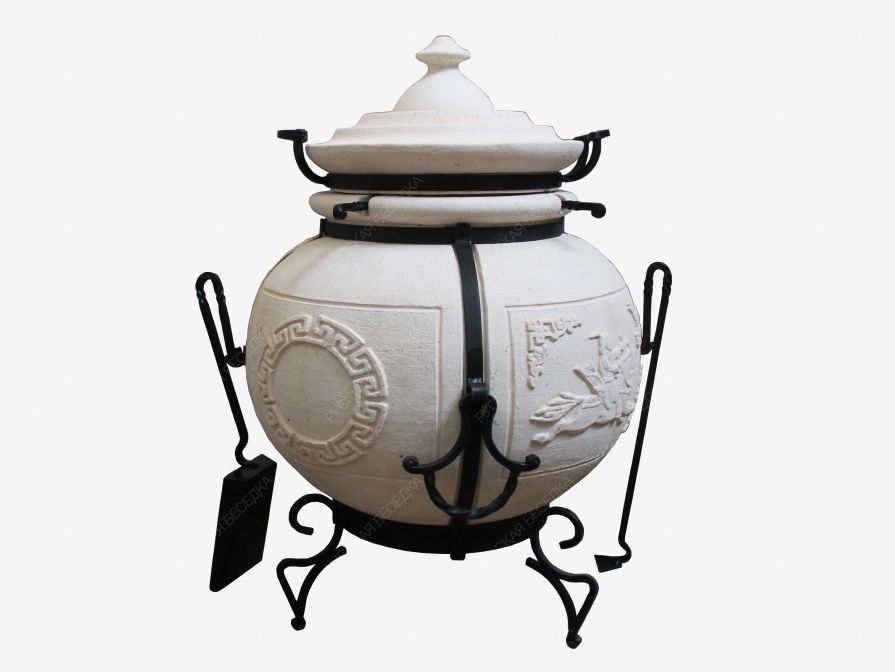 Орнаментально тандыр выдержан в едином стиле. Он имеет идеальную природную форму — шар, которая позволяет концентрировать жар максимально правильно внутри керамической печи.