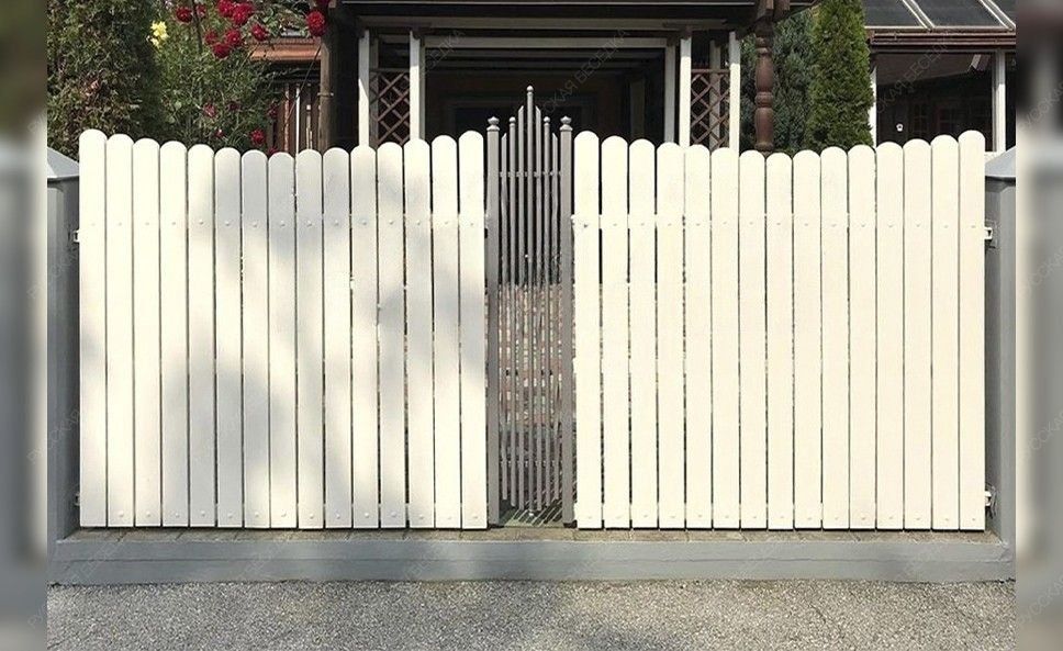 В стандартной комплектации - столбы металлические – профильная труба 60*60*2 мм* *Возможно установка бетонных столбов. *Допускается замена на деревянные столбы.