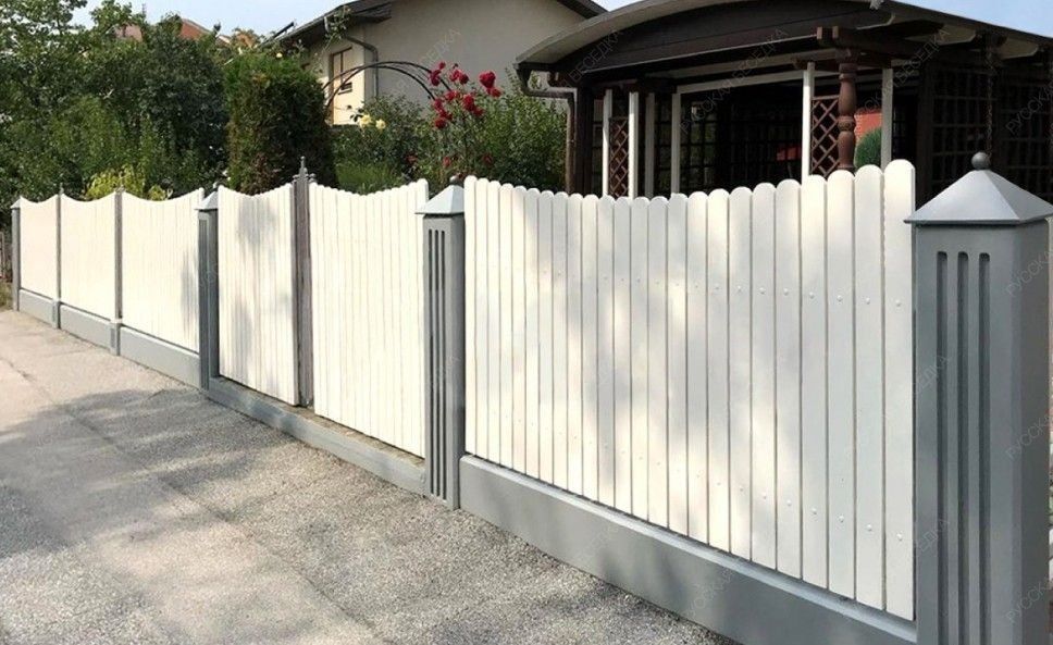 Профильная труба 40х20х2 мм, окрашенная в 2 слоя Обработка: Tikkurila METALLISTA PRIMER (грунт), краска Tikkurila Metallista в цвет заборной доски. Или деревянный каркас из строганного бруска 50х50