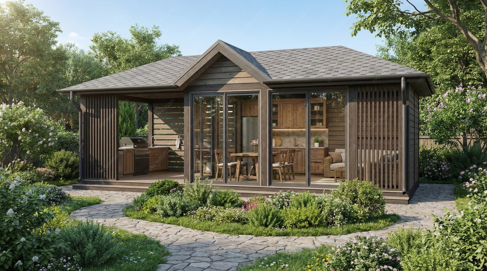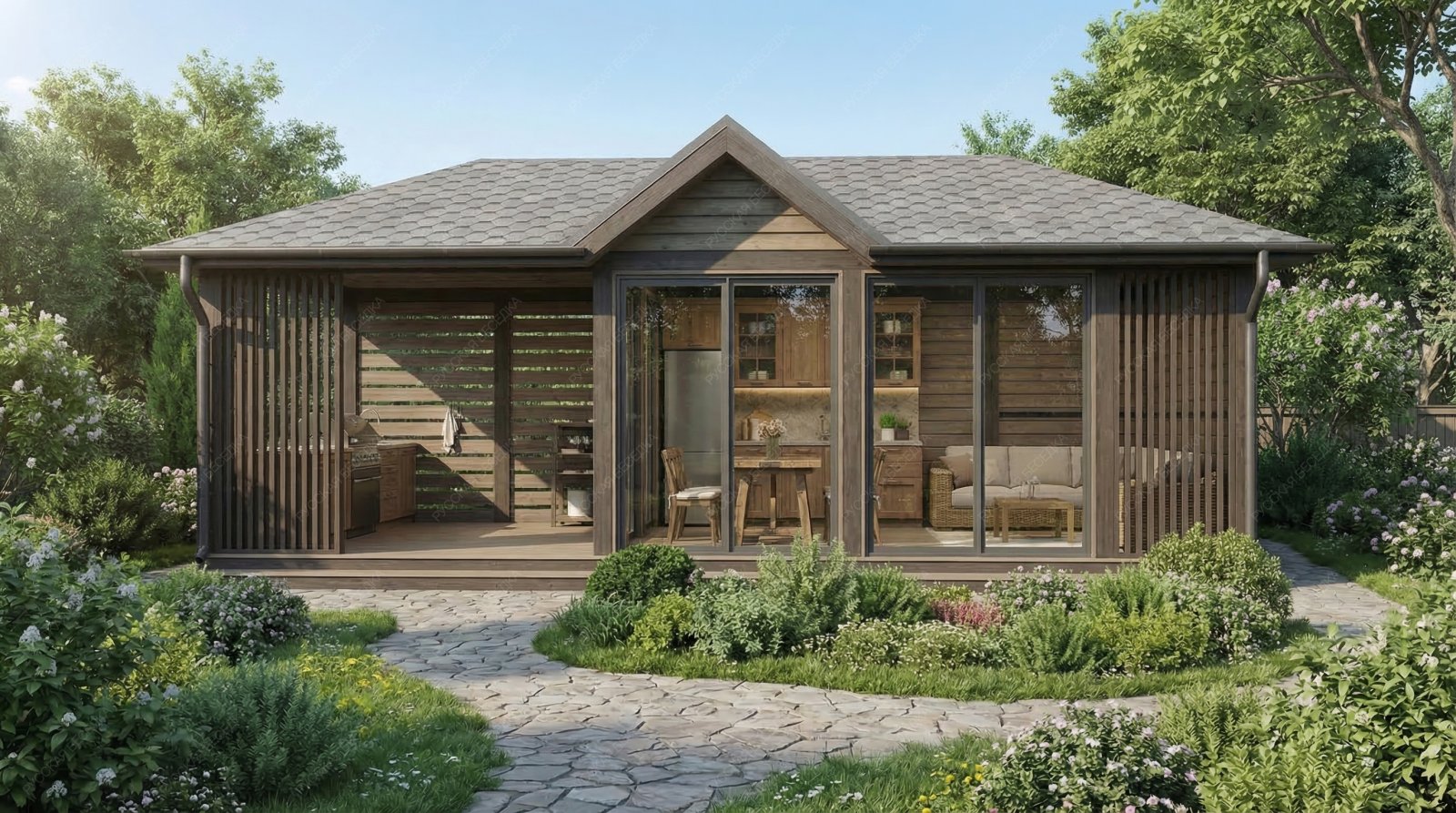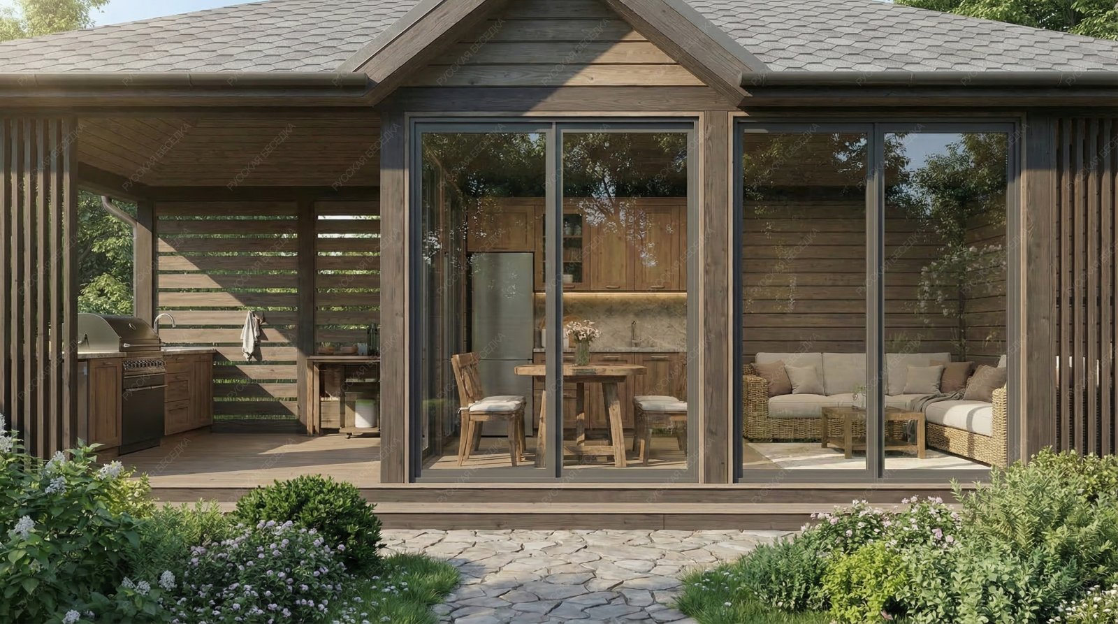 Закрытая беседка Шале с вальмовой кровлей