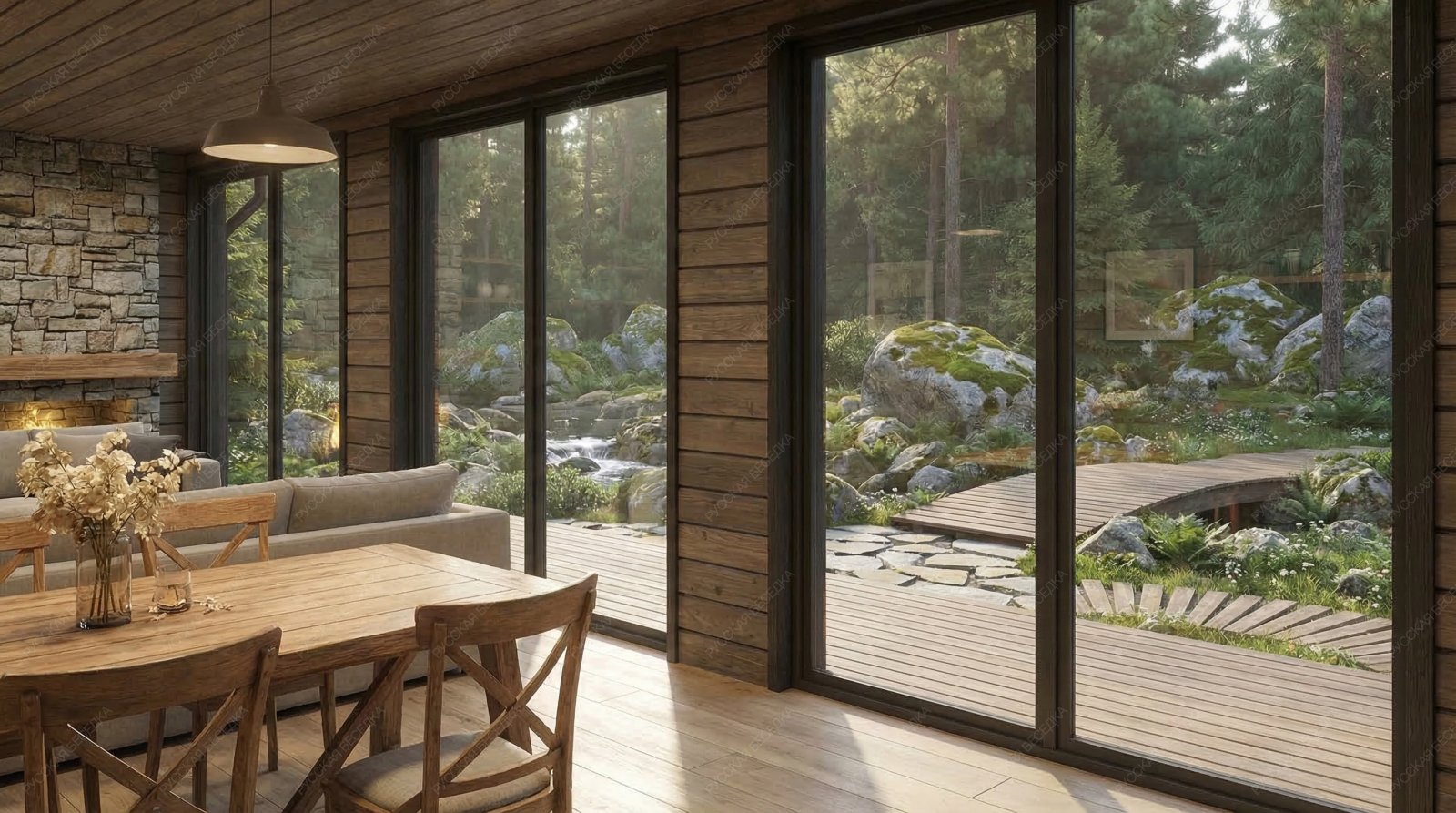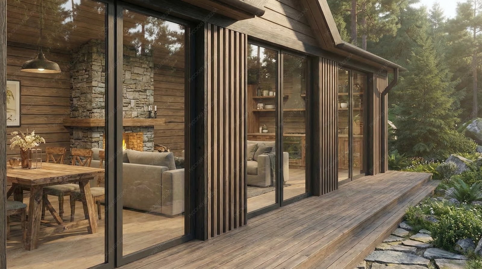 Раздвижная алюминиевая система. Окна в бронировочной пленке. Цвет пластика белый или коричневый.