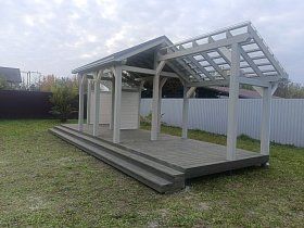 ДПК — это древесно-полимерный композит, современный материал, предназначенный для наружного применения в любых климатических условиях с самыми интенсивными нагрузками. Не подвергается короблению и растрескиванию. В процессе производства волокна древесины смешиваются с полиэтиленом низкого давления, добавками и красителями, что позволяет защитить их от воздействия бактерий и грибков, сохранить привлекательный вид изделия в течение длительного срока эксплуатации. При этом покрытию не нужны ни лак, ни специальная пропитка, ни другие защитные и декоративные средства.